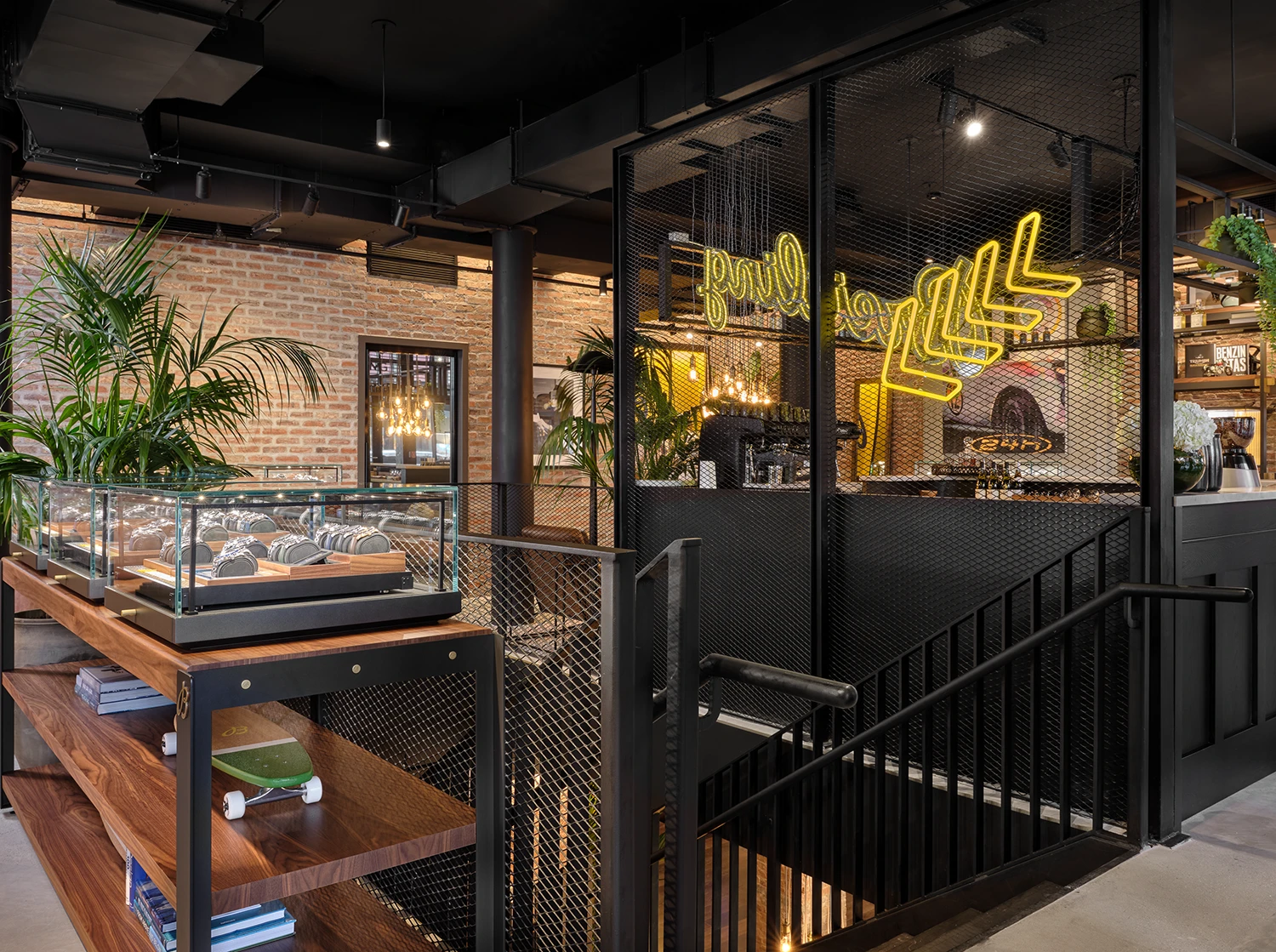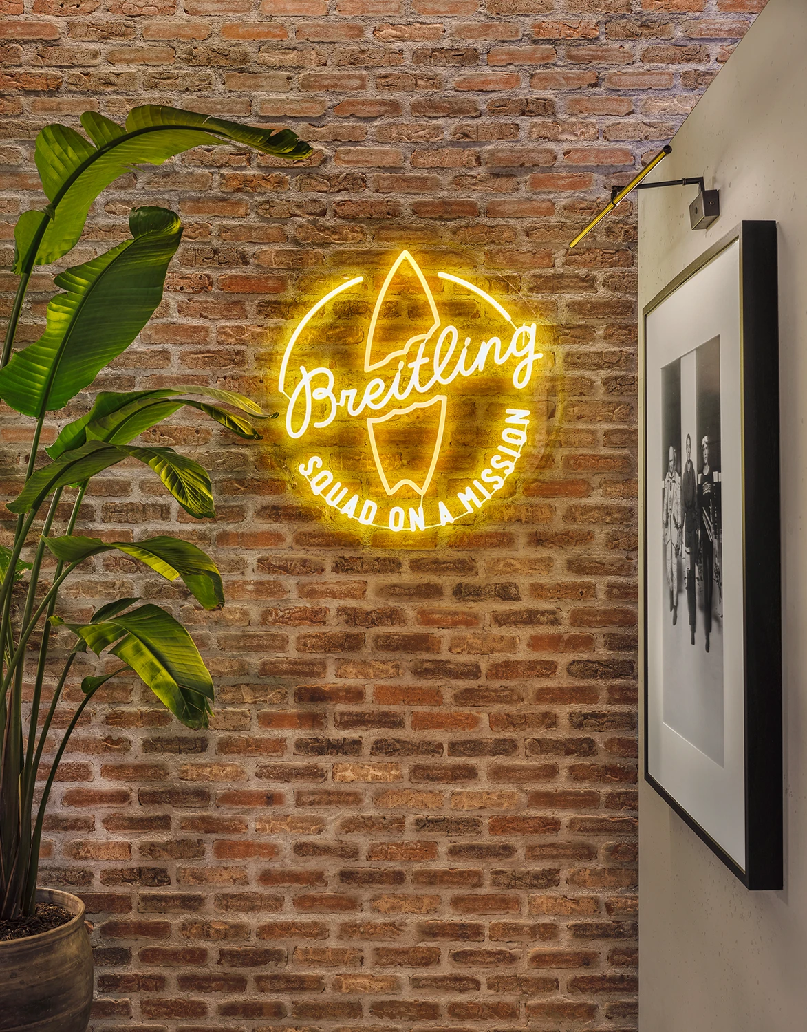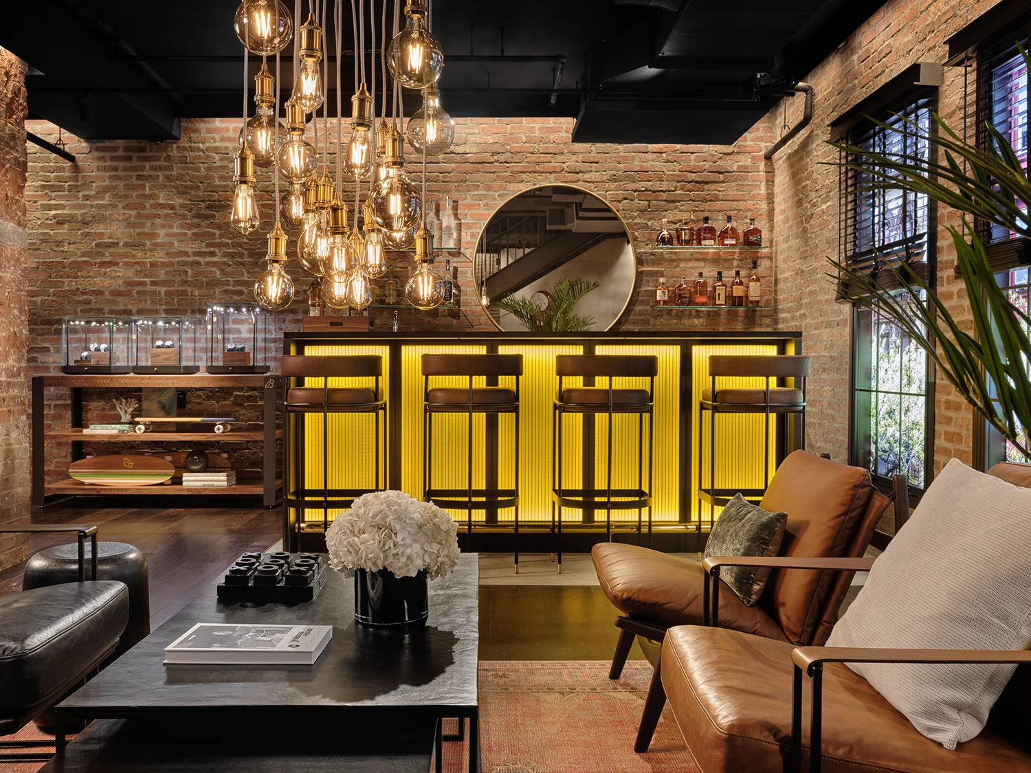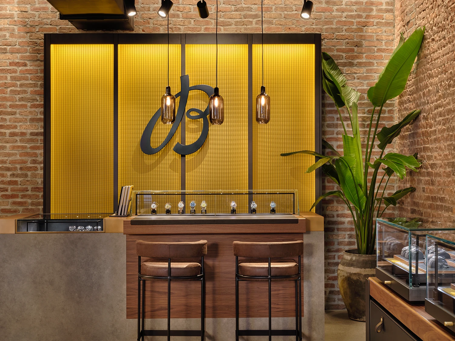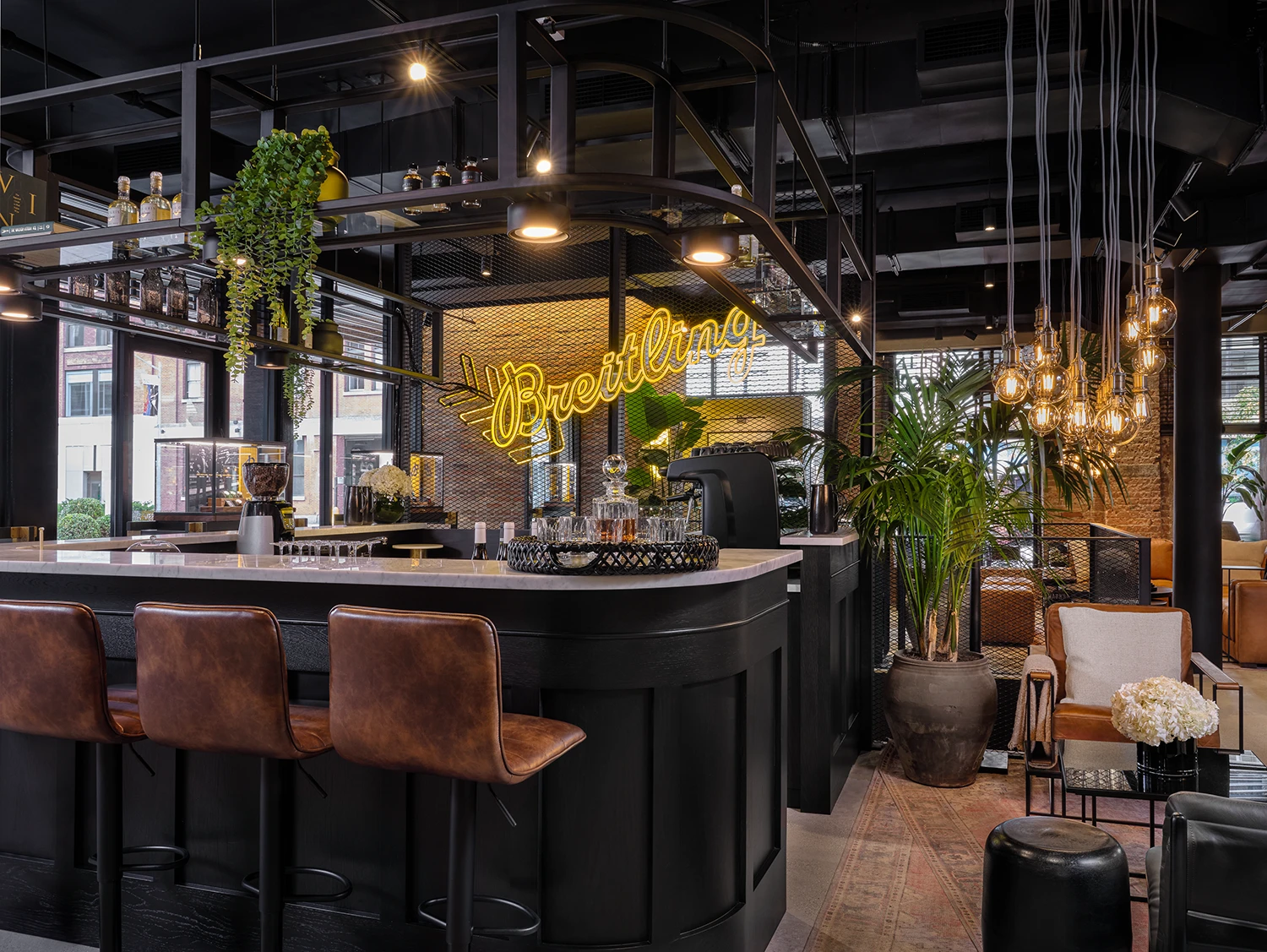 With the success of the Breitling Boutique on Madison Avenue, a new Breitling Boutique was constructed at 875 Washington Street, continuing the brand’s iconic blend of luxury and industrial style. The uniformity of industrial-inspired materials, such as exposed brick walls, concrete beams, and warm wood floors, remained consistent, further solidifying Breitling’s identity, as well as the interior’s custom-built display cases showcasing the luxury timepieces. The Washington Street location introduced distinct design elements that set it apart. The design here incorporated larger glass windows, allowing natural light to fill the space, enhancing the visibility of the timepieces and creating an inviting, open atmosphere that draws attention to Breitling's luxurious offerings. A fusion of the brand’s signature vintage aviation-inspired decor and modern finishes makes this boutique a standout destination for customers. This project showcased our expertise in maintaining Breitling’s brand identity while tailoring the design to suit its new surroundings, delivering a space that embodies both timeless luxury and a modern retail experience.